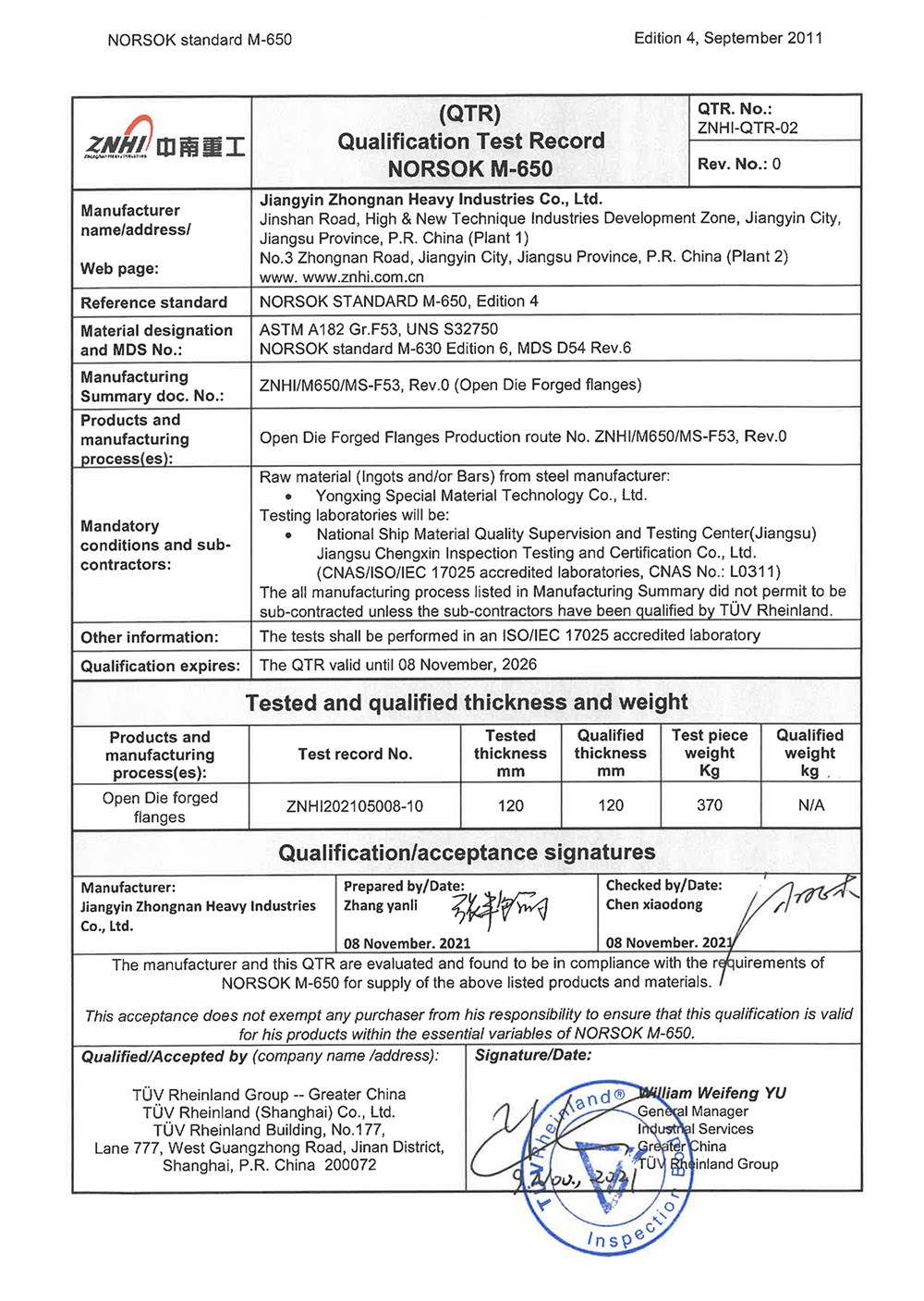 ZNHI-M650-QTR-02 Rev.0-Forging锻件F53