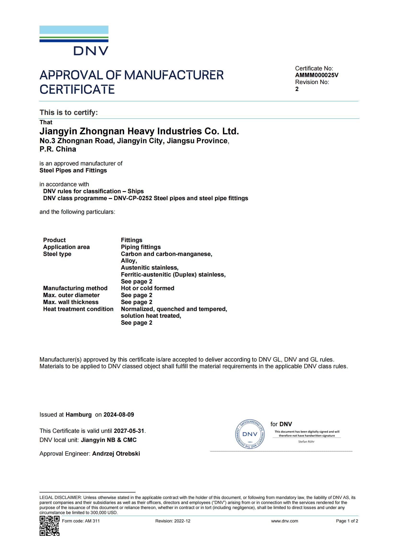 DNV-Pipe Fittings Factory Approval