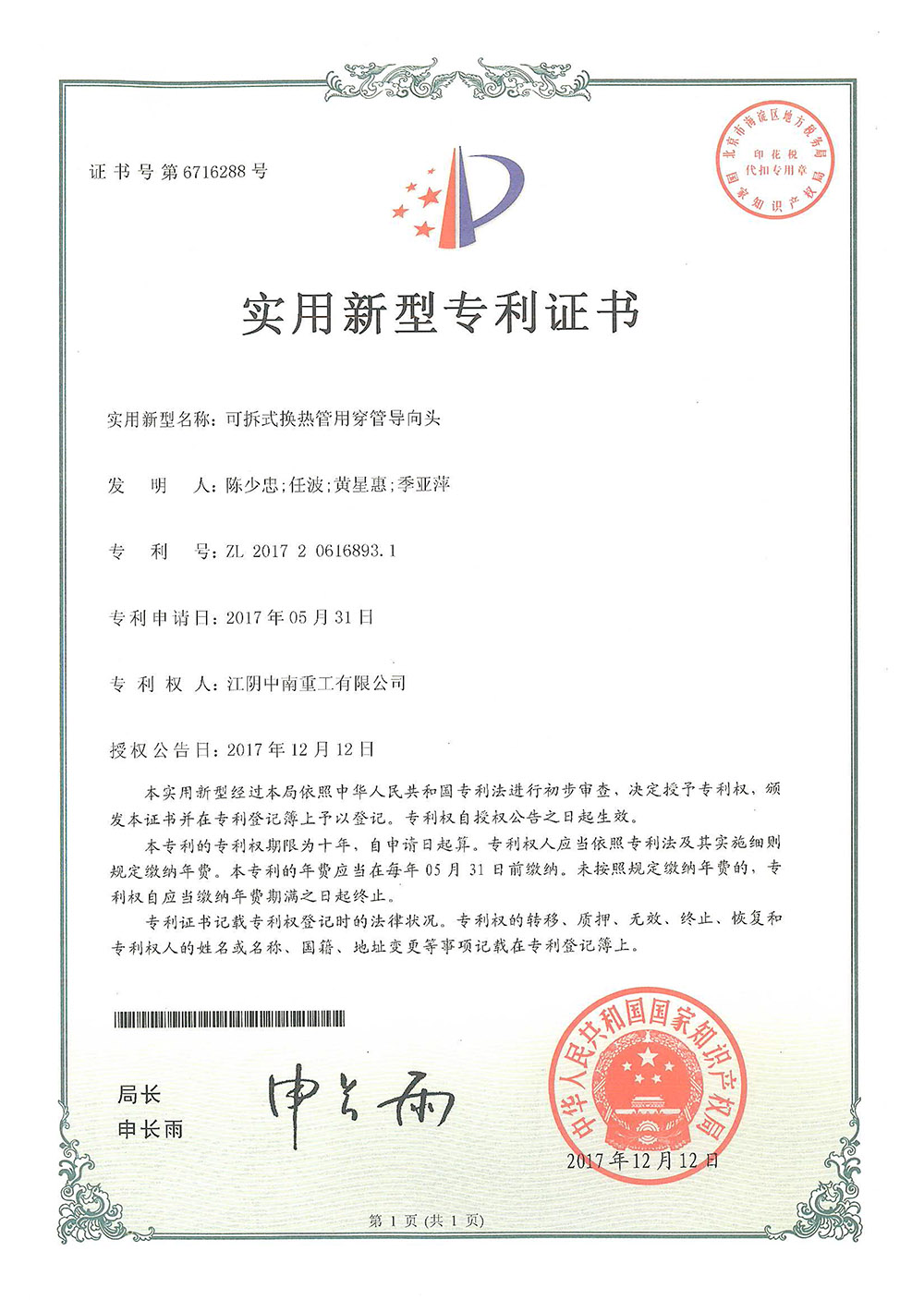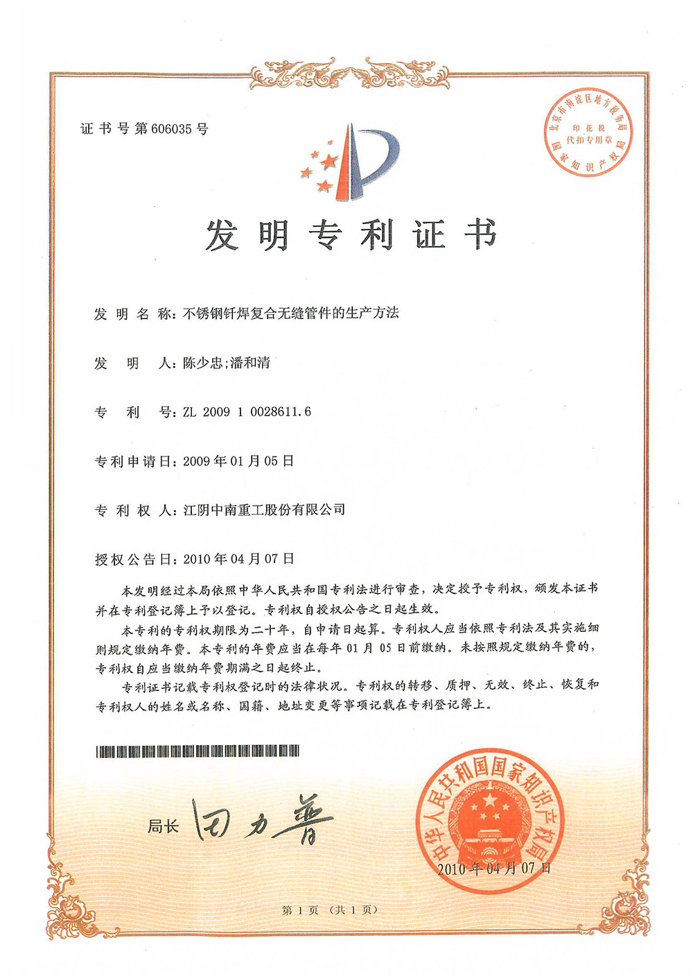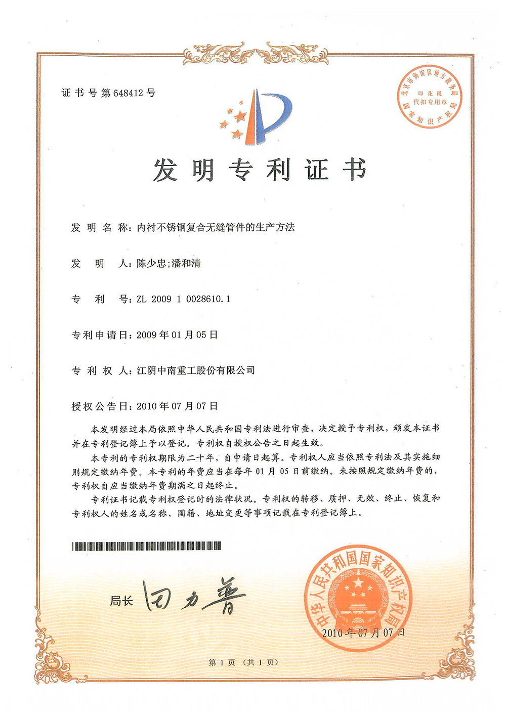Patent Certificate
